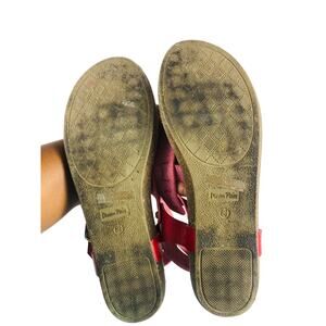 Women's Red Leather Sandals Thongs Slingback Flip Flops Flats US 8.5