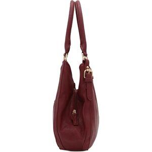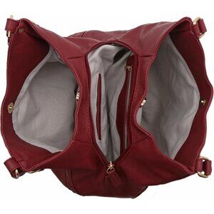 Women's Red Lightweight Top Handles Zipper Closure Leather Medium Hobo Bag