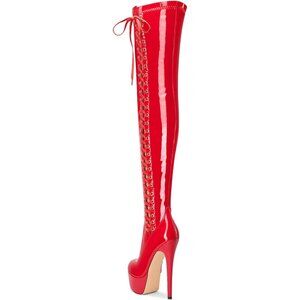 Womens Red Over The Knee Patent Leather Thigh High Zipper 5.9In High Heel Boots
