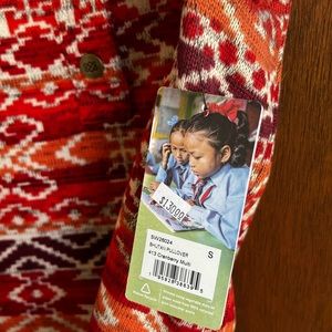 Stay cozy and stylish with this vibrant red patterned sweater. Perfect for any casual outing.