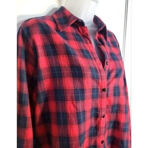 Women’s Red Plaid Button Down Embroidered Velvet Back Boho Western Shirt Sz M