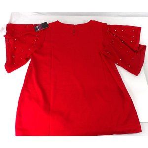 Women's Red Pull Over Blouse with Butterfly Sleeves Large NWT