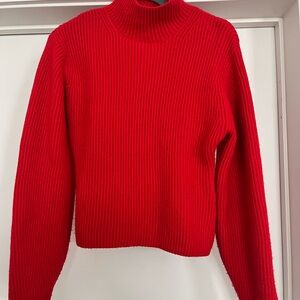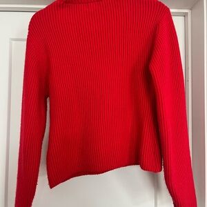 Stay cozy and stylish with this vibrant red ribbed sweater. Perfect for the holidays, this sweater adds a pop of color to your wardrobe.