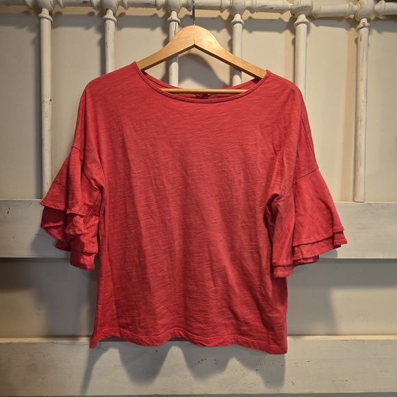 Women's Red Ruffle Sleeve Top
