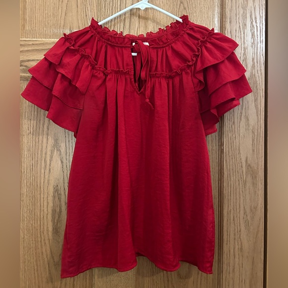 Women's Red Ruffle Top