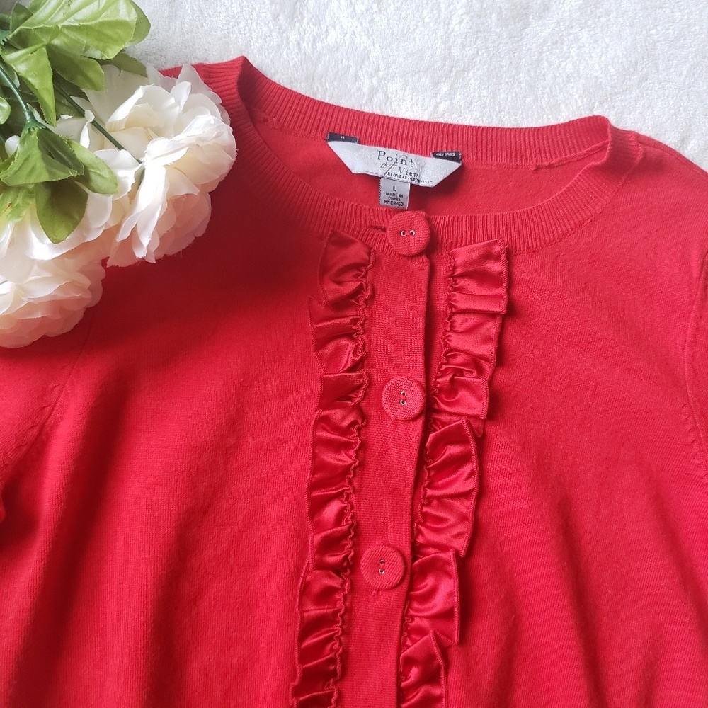 Women's Red Ruffled Cardigan