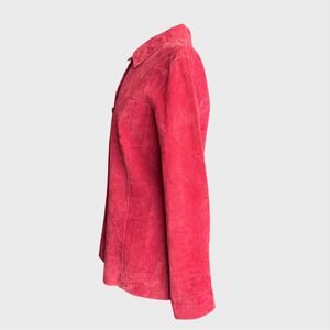 Women's Red Rust Suede Leather Shirt Button Up Long Sleeve Size 10 Boho