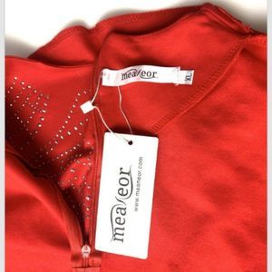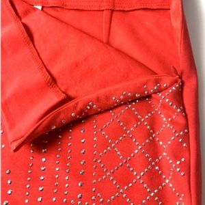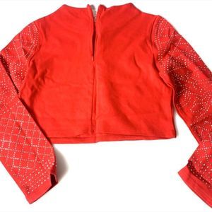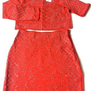Women's Red Sequins Crop Top and Skirt Bodycon 2 Piece Outfit Long Sleeve Sz L