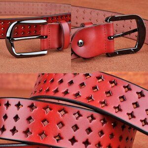 Women's Red Soft Genuine Leather Belts with Pin Buckle Comfortable
