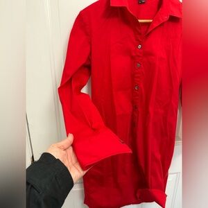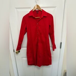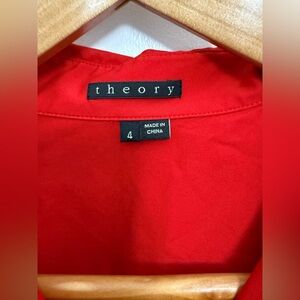 Casual red dress from Theory. This button up mini dress is a cotton/nylon blend which is stretchy and comfy. Size 4.