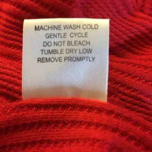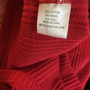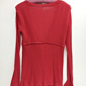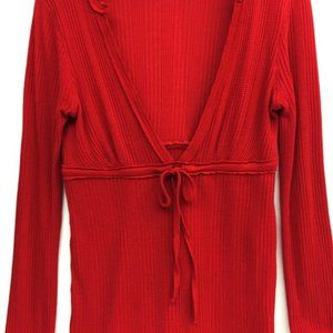 Womens Red V Neck Empire Top Long Sleeves Raw Edge Tie Bow Cotton Knit Blouse M