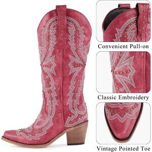 DURABLE CONSTRUCTION: With a reinforced rubber outsole, cowgirl boots women are built to withstand daily use while maintaining their shape and style, making them a long-lasting addition to your closet;