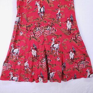 Women's Red Western Fit and Flare Horseback Riding Hunting Print Design Dress