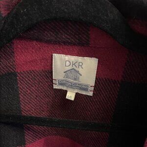 Bit of a thicker material so works well as a light jacket. Perfect for a Fall walk. More of a deep red/almost burgundy in person. Oversized fit