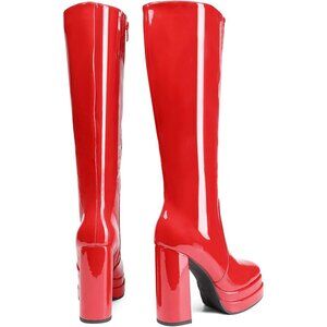 ⚡Women's Red pat Faux Leather Platform Heeled Knee High Long Chunky Tall Boot