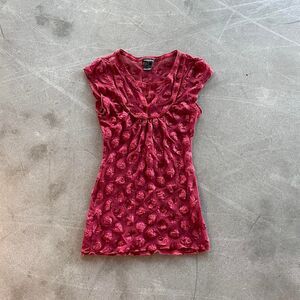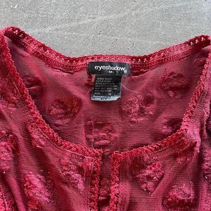 Red y2k sheer blouse/top by eyeshadow. Very sheer see hand for reference in last pic. Size medium. Perfect for valentine’s day.