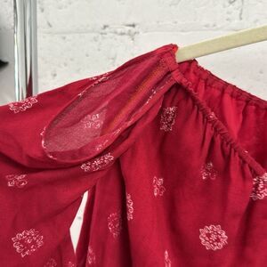 Women's Red Bohemian Top Bandana Pattern - Long Sleeve Open - Size Small