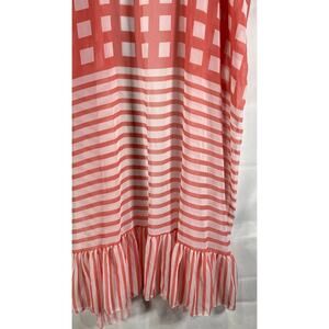 Women's Red/White Square-Striped Printed Ruffle-Hem Open-Front Cardigan SZ OS
