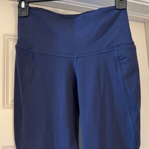 Experience comfort and style with these navy high-waisted leggings. Perfect for any casual outing or workout session. Approx inseam is 27”. EUC. Speedwick material. No pilling or sign of wear. Pocket on one side.