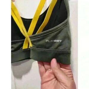 This Women's Reebok PlayDry Strap Sports Bra in Green with Yellow Straps is perfect for gym and training, pole dance, walking, weight lifting, running, yoga, Pilates, bodybuilding, and fitness. This sports bra is made of polyester and spandex and was manufactured in Thailand. It features a stylish strap accent and is size XS.