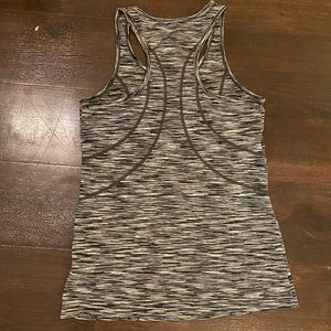This cute black/white Reebok tank is a size small. It has been worn a few times but still in great condition!! Silky material that wicks away sweat during workouts!