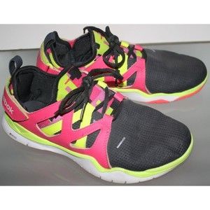 Women's Reebok Sneakers Multi-Color Sz 7 Adjustable Heel Pink Blk Yellow M48000