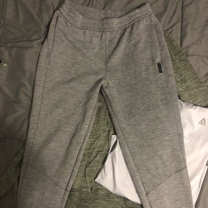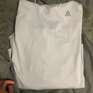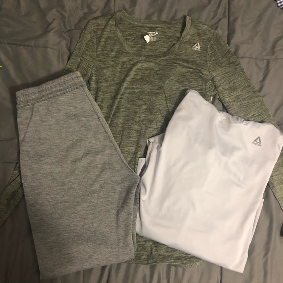 Women’s Reebok workout bundle. The shirt is S and NWT, the grey hoodie was worn once and the sweat pants are in great condition size M.