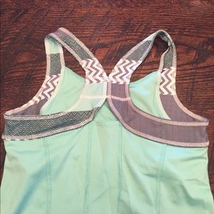 Great workout tank with built-in bra! Size M. VERY gently worn and in like-new condition! Color is a light mint/turquoise color.