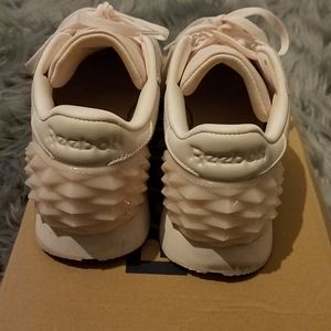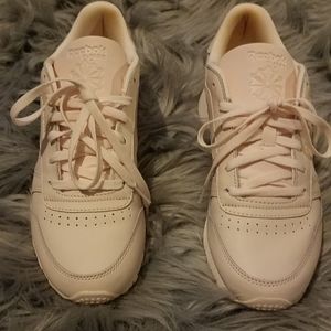 Light pink women's reebok's. I wore them for an hour. They were just a little lose fitting for my liking.