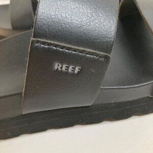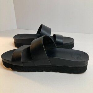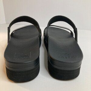 Womens Reef Cushion Vista Hi Platform Sandals Vegan Leather 2 Strap Slides Black