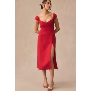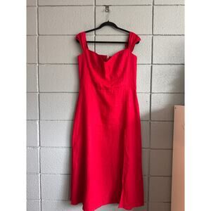 Women's Reformation Bridgton 100% Linen Midi Dress size 12 in Cherry Red Holiday