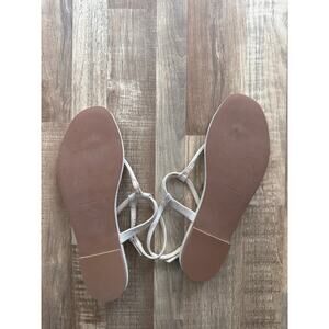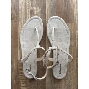 Women's Reformation Thea T-Strap Linen Sandals in Cream size 8 Quiet Luxury