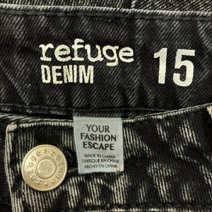 Style: Cut-Off - Fabric Type: Denim Material: Cotton - Theme: Bohemian, Classic, College, Designer, Geek, Summer Shorts, Hipster, Nerd, Preppy, Rockabilly - Front Type: Flat Front - Fit: Regular - Features: Belted, Comfort, Easy Care, Pockets - Color: Black - Closure: Button - Occasion: Casual, Party - Brand: Refuge - Bottoms Size (Women's): 15 -