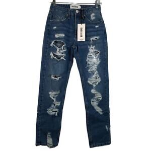 Women's Refuge Denim Boyfriend Mid Rise Distressed Jean, Size 0 - Blue