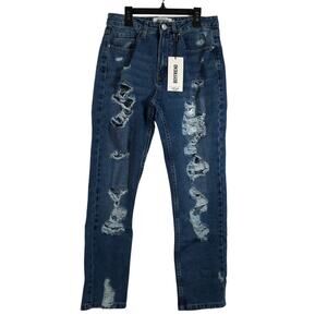 Women's Refuge Denim Boyfriend Mid Rise Distressed Jean, Size 5 - Blue