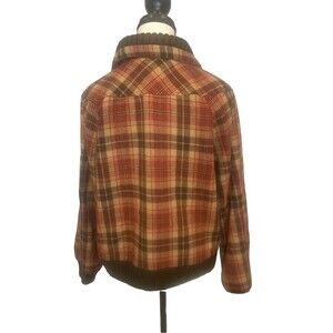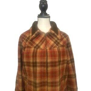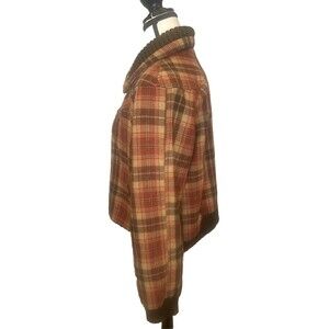 Women’s Relativity BROWN Plaid Lined Full Zip Wool Blend Jacket Pockets Sz Large