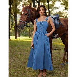 Womens Renaissance Dress Lace Up Light Blue
