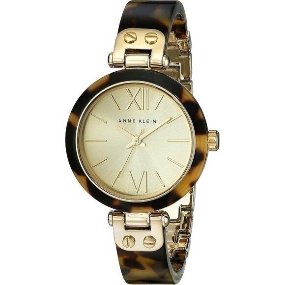 Women's Resin Bangle Watch Metal Tortoise Shell Dial Water-Resistant Quartz