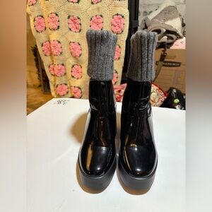 Womens Retro Boots Size 7.5 Y2K Side zip Faux Leather Chunky Heels