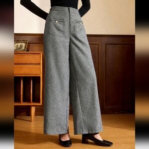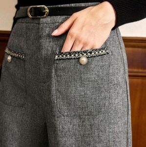 Women's Retro Elegant Ribbon Decor Button Casual Wide Leg Pants For Women