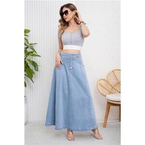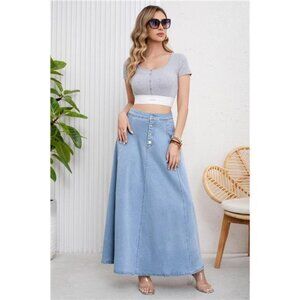 Women's Retro High Waisted Button Maxi Skirts Light Blue