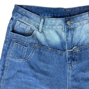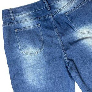 Womens Retro Jeans Size 2XL Blue High Rise Straight Leg Washed Denim Stretch