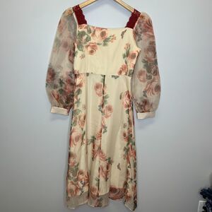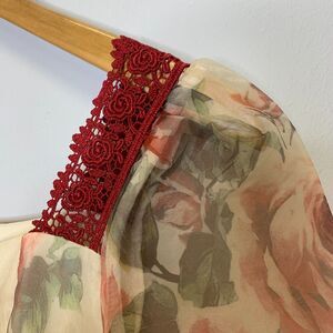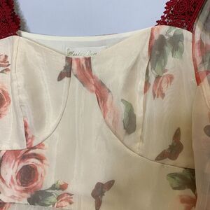 Womens Retro Romantic Floral Burgundy Crochet Lace Fitted Bodice Dress Medium