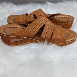 Women's Retro Round Heeled Open Toe Wedges NWT