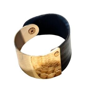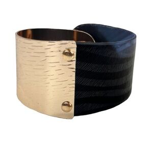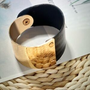 Women’s Retro Style Black and Gold Tone Bracelet. Width: 1.57”. 8.07” snapped around.