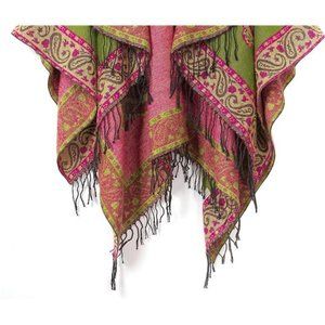 Women's Retro Style Vintage Pattern Tassel Poncho Shawl Cape Wraps For Women