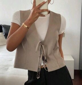 Women's Retro Vest Tank Top, Sleeveless Thin Design Casual Blazer Jacket