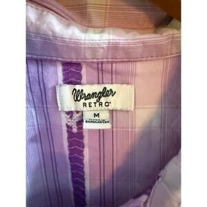 Step back in time with this awesome retro Wrangler pearl snap button-down shirt! This unique piece is perfect for adding a touch of vintage flair to your wardrobe.