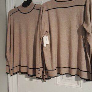 Womens Retrology Mock Neck Sweater with Piping - Choice Blue or Heather