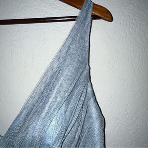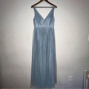 Revelry Women's Size 6 Cinderella Blue Chiffon Formal Dress is a stunning piece that will make you feel like a true princess. The dress features a flattering V-neckline, sleeveless design with strappy sleeves, and a zip closure. The dress is made from high-quality chiffon fabric with a layered design that adds an extra touch of elegance. The dress is perfect for formal occasions like weddings, parties, or cocktail events. The dress has an empire waistline and a fit & flare style that flatters the figure. The dress is lined and collarless, making it comfortable to wear all day long. The dress is available in a beautiful blue color that will make you stand out in any crowd. The dress is perfect for any season, whether it's winter, summer, fall, or spring. The dress is from the Revelry brand and is designed for regular-sized women. Size 6